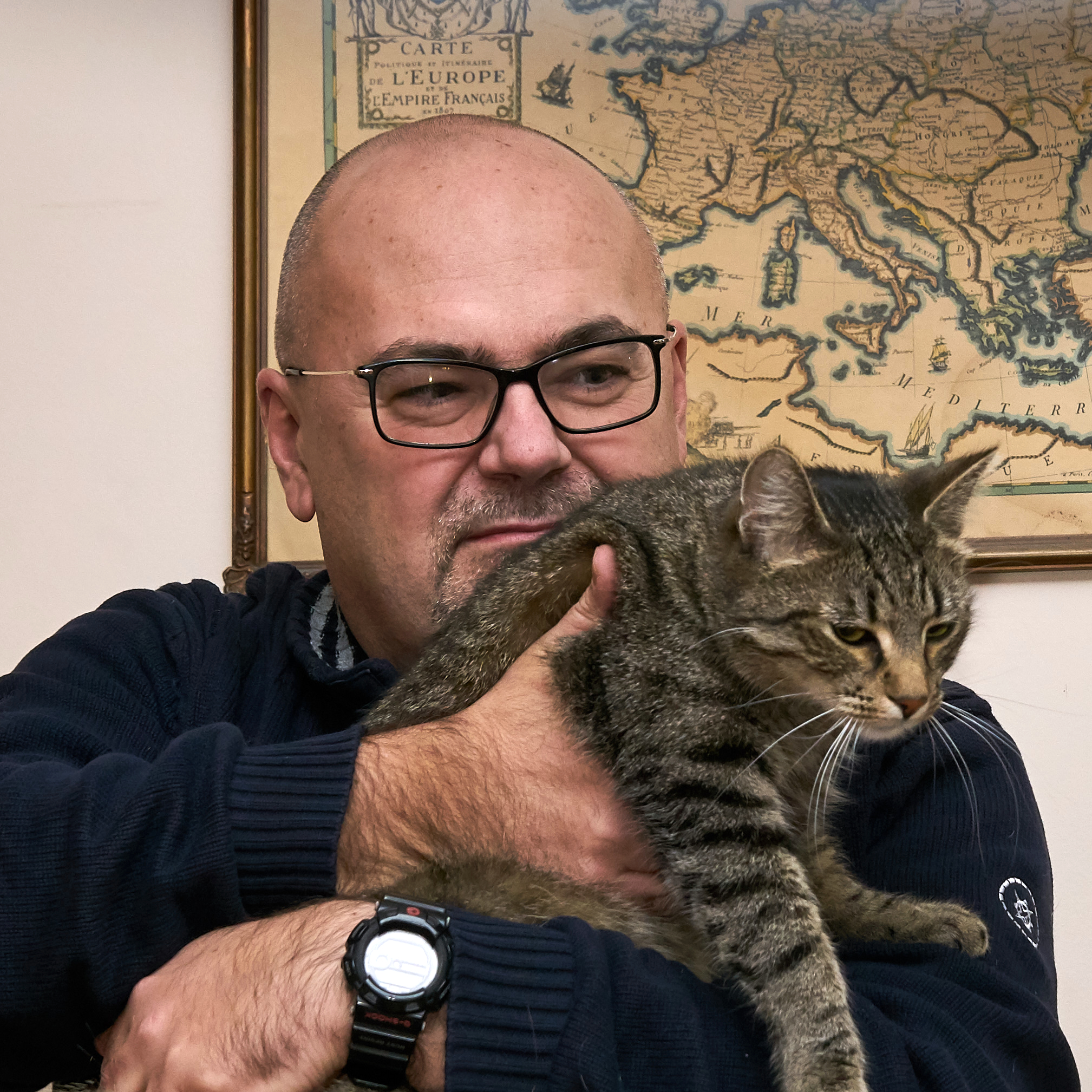 W nielicznych wolnych chwilach zajmuję się zbyt licznymi hobby – obserwuję gwiazdy i ptaki, żegluję, dłubię w obwodach elektronicznych. Służę dwójce domowych kotów (na zdjęciu z kotem Rysiem).